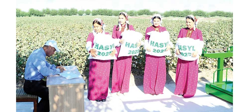 Hormatly Prezidentimiziň ak patasy bilen, Halkara parahatçylyk we ynanyşmak ýylynyň ýygym möwsümine ýokary ruhubelentlik bilen girişen welaýatymyzyň pagtaçy daýhanlary, olara dürli ugurlar boýunça ýardam berýän edara-kärhanalaryň işgärleri giň meýdanlarda kemala getirilen bereketli hasyly çalt hem-de ýitgisiz ýygnap, Watan harmanyna tabşyrmak ugrundaky aladalary barha giňden ýaýbaňlandyrýarlar. Mälim bolşy ýaly, şu möwsümde jemi 140 müň gektarda bu işi amala aşyrmak wezipesi durýar. Şoňa görä-de, zähmetsöýer pagtaçylar häzirki günleriň amatly pursatlaryndan ýerlikli peýdalanyp, ýokary netijeleri gazanýarlar. Bu hem pagta harmanlarynyň günsaýyn belende galmagyna ýardam berýär.